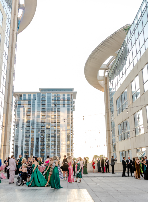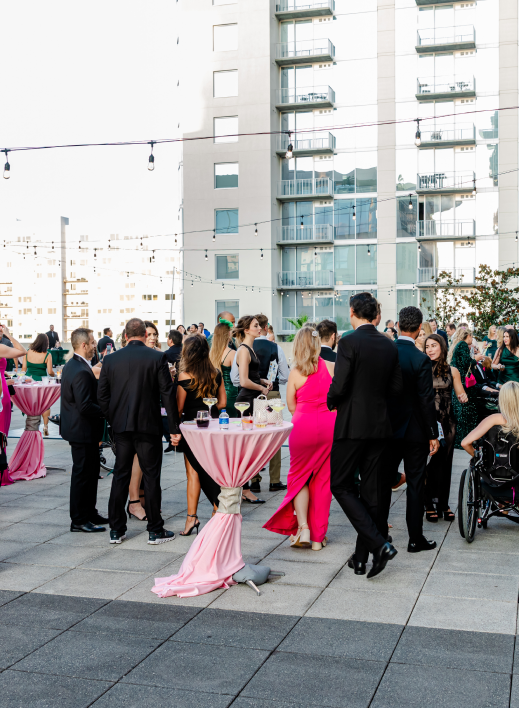 Hosted across The Gallery and the Rooftop, the experience welcomed guests into a polished reception flow with statement installations, branded visuals, and a high-energy atmosphere that still kept the mission front and center. Outdoor moments on the terrace delivered the signature Balcony wow-factor—a rooftop gathering between the towers, under market lights, with sweeping Downtown views—while the indoor program space set the stage for storytelling and fundraising highlights that celebrated NextStep’s impact and the community behind it.