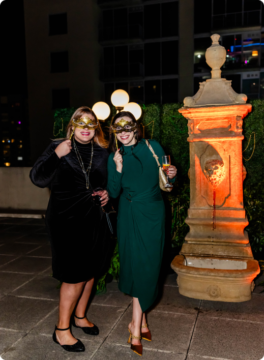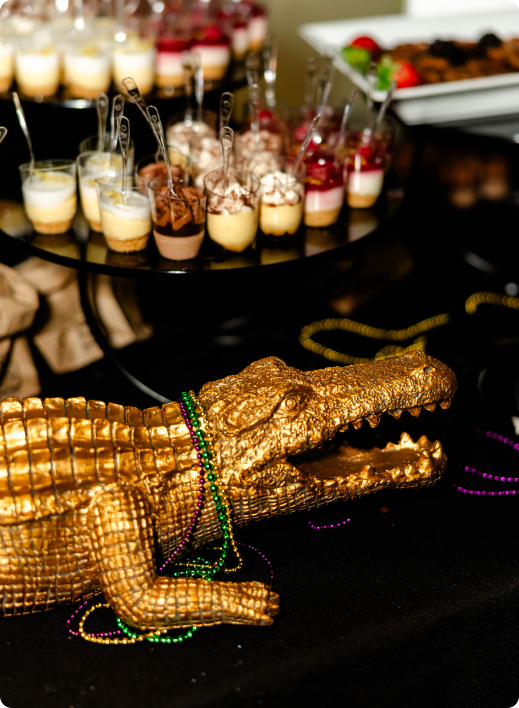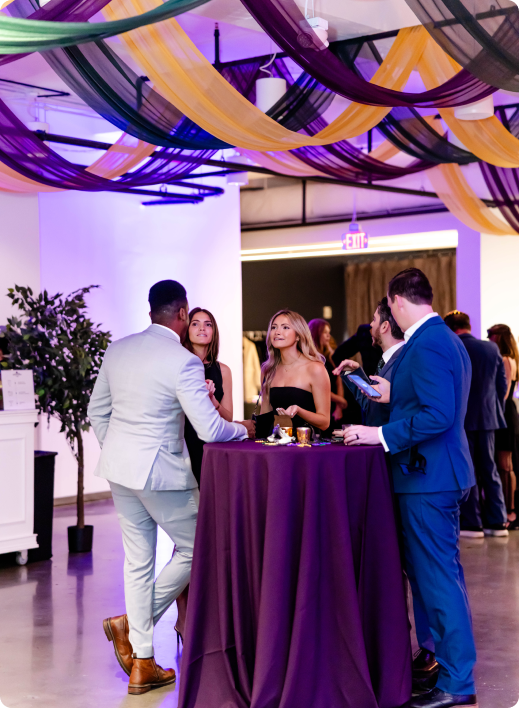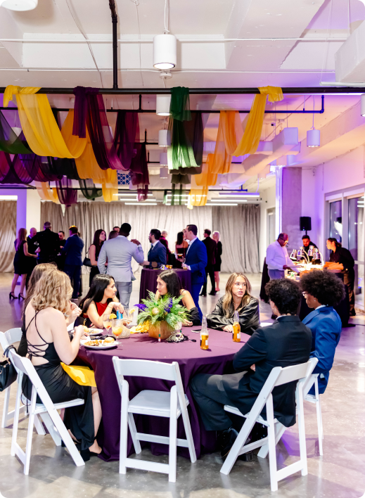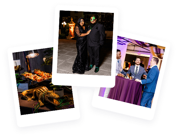 Launch brought their team together for a high-energy holiday party with a Mardi Gras twist, hosting 125 guests for an indoor-outdoor celebration across The Gallery and the Rooftop at The Balcony Orlando. The experience leaned fully into the spirit of New Orleans with masquerade masks, beads, and bold jewel tones, while maintaining a polished, corporate-forward atmosphere for the end-of-year celebration.